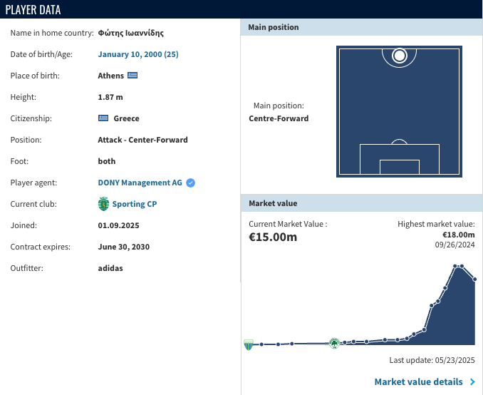 Transfer: €22m + €3m bonuses — a record sale for Panathinaikos